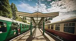 Towards the end of the 19th century, Swanage started to develop as a tourist resort. Through coaches and through trains were operated to Swanage from both London and from the industrial towns of the Midlands and North of England. To accommodate this traffic, the station was extensively altered in 1937, with extensions to the station buildings using matching materials and in a design blending well with the 1885 original. The new facilities provided a parcels office, ticket office, a waiting hall, a newsagents shop, and an extended goods shed. However the use of lorries to transport the ball clay, Purbeck stone, and Portland stone, and the increase in private car ownership in the second half of the 20th century eventually made the line unprofitable. Closure was first proposed in 1967, and despite local opposition the line finally closed on 3 January 1972.[1][2] During the final few years of the line's operation under British Rail, passenger train services were operated by two-car Class 205 diesel electric multiple units (also known as type 2H).