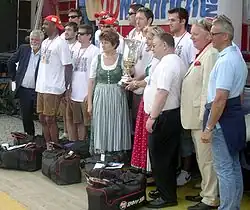 The Swans celebrating the 2007 championship with their team, president and the Mayor of Gmunden