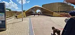 Phase one of the wider Copr Bay project also included a new gold-painted footbridge over Oystermouth Road which links the arena site to a new apartment complex and the city centre, an adjacent coastal-themed public park with a pavilion-style cafe restaurant and multi-storey car park underneath it, retail units on Cupid Way and a proposed hotel with a rooftop bar sited between the arena and the Swansea LC.
