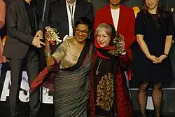 Swarna Mallawarachchi (born 1 August 1948: Sinhala: ස්වර්ණා මල්ලවාරච්චි), is an actress in Sri Lankan cinema. Often known as the "Golden star of Sinhalese cinema", Swarna began her acting career whilst still a schoolgirl, starring in the 1966 blockbuster film Sath Samudura directed by Siri Gunasinghe.[1] During a career spanning over 40 years, Swarna has won the 'Best Actress Award' 26 times, most by a Sri Lankan actress.[2]