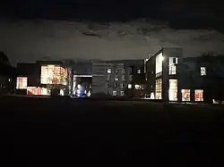 The 1960s and 1970s saw the construction of new buildings: Sharples Dining Hall in 1964, Worth Health Center in 1965, the Dana/Hallowell Residence Halls in 1967, and Lang Music Building in 1973.[10] They also saw a 1967 review of the college initiated by President Courtney Smith, a black protest movement, in which African-American students conducted an eight-day sit-in in the admissions office in 1969 to demand increased black enrollment – the sit-in abruptly ended after Smith's death from a heart attack on January 16[23][24] – and the establishment of both a Black Cultural Center (1970) and Women's Resource Center (1974).[10][25][26] The Environmental Studies program and the Intercultural Center were established in 1992, and in 1993 the Lang Performing Arts Center was opened; the Kohlberg Hall was then established in 1996.[10]