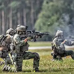 The Swedish Air Force Rangers[1] (Swedish: Flygbasjägarna, FBJ), is an elite specialist ground unit of the Swedish Air Force. The name "Flygbasjägare" originates in the unit's old role during the Cold War of conducting security operations around airfields and other air force installations. The current primary tasks of the unit are personnel recovery, reconnaissance and force protection.