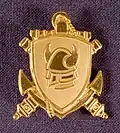 The coat of arms of the Swedish Amphibious Corps since 2000. It was previously used by the Swedish Coastal Artillery 1979–2000 and the Coastal Artillery Center (Kustartillericentrum, KAC) 1995–1997. Blazon: "Gules, two gunbarrels of older pattern in saltire above a flaming grenade and waves, all or".[8]