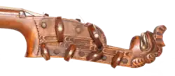 Double-decker or Dubbelplansfiol is a recent and colloquial name of the dominant variant of preserved Swedish violins with sympathetic strings; what they were called when they originated in the 18th century is not known. The Swedish collector of musical instruments Daniel Fryklund writes in 1921 that "In Sweden, the author has found several violini d'amore of a peculiar type with 4 strings and 8 resonance strings, of which the later are attached to small pegs, which are placed behind the larger screws for the playing strings in a pegbox which is extended backwards and such an arrangement of the pegs is not observed by the author on any other violin".[1] Thus, Fryklund suggests it is a specific instrument type typical for Sweden, but since he only has observed five instruments he does not conclude it and calls it with the more unspecific name violino d'amore. Today more specimens have been found and out of 27 preserved Swedish violins with sympathetic strings in total, 23 are Double-deckers.[2] Also three of the four preserved instruments that are not Double-deckers are built during the 20th century, while the vast majority of the Double-deckers with a known origin are built during the 18th century, which indicates that the Double-deckers are both earlier and dominant[2]
