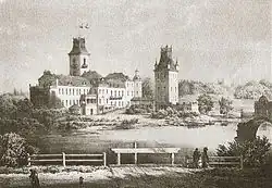 On 20 October 1655, over 1,000 nobles, mostly from Samogitia, gathered at the Kėdainiai Manor, signed the Union of Kėdainiai on behalf of the Grand Duchy of Lithuania, dissolved the Polish–Lithuanian Commonwealth and solemnly declared the establishment of a personal union with the Swedish Empire.[2][8] The Swedish side was represented by Lord High Treasurer Magnus Gabriel De la Gardie and Governor Bengt Skytte, with the latter also holding the position of viceroy.[3][9] King of Sweden Charles X Gustav became Grand Duke of Lithuania.[1] Following this, another act was signed by which the Lithuanian nobility pledged its loyalty to the Swedish Crown.[2] On 23 October 1655, the Lithuanian Advisory Council was inaugurated.[1] Swedish Lithuania was set up as a dominicum directum with Jonušas Radvila being promised exceptional rights to certain estates.[2] It is known that both Jonušas and Boguslavas Radvila (Bogusław Radziwiłł) initially wanted to acquire the Lithuanian territories of Minsk, Navahrudak, Brest Voivodeships and Volkovysk, Grodno Counties, as well as the Polish Podlaskie Voivodeship. Meanwhile, ethnic Lithuania was supposed to remain under the direct rule of Sweden.[7] Jonušas Radvila also hoped to become an uncrowned ruler of the entire Swedish protectorate, but his endeavour was unsuccessful.[10]
