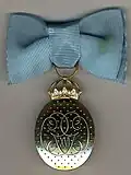 OII:sGbmt | King Oscar II and Queen Sofia's Golden Wedding Medal | 1907 | The Konung Oscar II:s och Drottning Sofias guldbröllopsminnestecken was created to commemorate King Oscar II and Queen Sophia's golden wedding anniversary on 6 June 1907. The 460 of the Royal commemorative badges was awarded to members of the royal family and court officials. The badge was designed by the royal couple's youngest son, Prince Eugen. | [4] | |