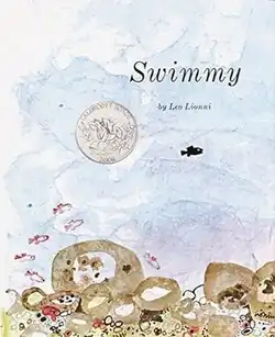 Swimmy is a 1963 picture book written and illustrated by Leo Lionni. The book is the story of a very small fish who stands out because he has a different color from all of his school. He is curious and adventurous, exploring the sea after being forced away from his home. When he meets a new school that fears leaving their safe rock and being attacked by a predator, Swimmy saves the day by being the leader they need. The book was a recipient of a 1964 Caldecott Honor for its illustrations.[1]