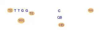A different version of the swinging gate was used by the Cincinnati Bengals during their 2015 season, nicknamed the "Star Wars formation"[2] and shifting only two blockers to the side of the formation instead of four.[3]
