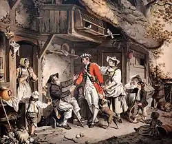 During the latter part of the 18th century, increasing reliance was placed on recruiting from the "children of the regiment" – the sons of Swiss soldiers who had married French women and stayed in France after their term of service had ended. The effect was to partially break down barriers between the Swiss and the French population amongst whom they were garrisoned. On the eve of the French Revolution the log-book of one Swiss regiment expressed concern that Franco-Swiss recruits were becoming prone to desertion as general discontent spread.[12] French-speaking Swiss soldiers were generally to prove more susceptible to revolutionary propaganda than their German-speaking colleagues.[13]