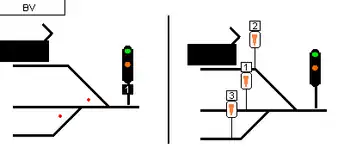 In contrast to shunting signals, dwarf signals protect paths and are interlocked. Points in zones equipped with dwarf signals do not have points indicators.