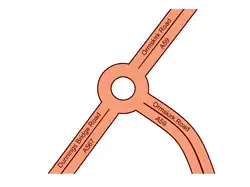 The junction originates from the construction of Dunnings Bridge Road during the 1930s,[3] linking what is now known as the A59 to the A5036 (then known as the A567 road).[4][5] Starting as a simple t-junction,[6] a roundabout appeared on maps from the late 1930s.[7] The etymology of the name "switch island" is uncertain, although references to the new "switch road" linking Maghull to northern Liverpool appeared in 1938 upon the link road's opening.[8][9] The earliest media references to "switch island" can be dated to the mid-1950s.[10]