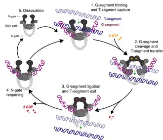 - ^ Sutormin DA, Galivondzhyan AK, Polkhovskiy AV, Kamalyan SO, Severinov KV, Dubiley SA (2021-03-15). "Diversity and Functions of Type II Topoisomerases". Acta Naturae. 13 (1): 59–75. doi:10.32607/actanaturae.11058. PMC 8084294. PMID 33959387.
