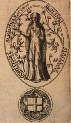On 5 July 1272, at the age of seventeen, she married the future Amadeus V in Lyon.[1] By her marriage, her personal domains of Bâgé and Bresse was eventually to become incorporated in the County of Savoy, with exception of some land which had been donated to some relatives in 1265.[2]