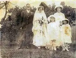 Smith remarried on 25 February 1915, to Catherine (Kate) Bint, again at St Mary's Church.[1] Kate Bint was born in July 1892 at Tarata in Taranaki, some 18 kilometres (11 mi) by road west of Inglewood.[4] He had a further three children from his second marriage: Raymond Sydney (1916–1944), Harry Allman (1918–1998), and Lorna Hazel (b. 1922).[1]