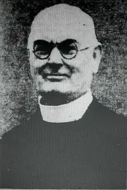He was curate of St Mary and St Martin's Church, Blyth, 1894–1898.[3][14][26] On 10 June 1896 he was best man at the wedding of Reverend F.W. Keene, vicar of St John the Baptist church, Misson, Nottinghamshire, where the bridal party wore satin, silk and velvet and carried gifts of gold, refreshments were provided by Buzzard of Oxford Street, and the married couple were to honeymoon on the Continent.[27] When he left Blyth Church, he was presented on Monday 25 June 1898 by 200 people from the parishes of Blyth, Ranskill and Barnby Moor with an illustrated address and a gift of "solid silver communion plate and candlestick enclosed in a handsome leather bag, suitably inscribed, together with a purse containing thirty sovereigns." Around the same time, the Ranskill Ambulance Association presented him with a brass inkstand and letter holder.[28]