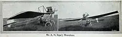 Between late 1909 and early 1910, just a year after Wilbur Wright first demonstrated powered flight in Europe, Sippe (aged 20), his brother Arthur, and their friend James Jensen (or Jenson) designed and built a monoplane from steel tubing. Its attempted maiden flight on 24 April 1910 at Addington, Croydon, failed due to insufficient power:[4]