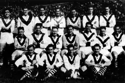 In 1932, the red sash on the guernsey was replaced with a red "V".[39] The club was at its most successful in the 1930s, when key recruits from both Victoria and interstate led to a string of appearances in the finals, including four successive grand final appearances from 1933 to 1936, albeit with only one premiership in 1933. The collection of players recruited from interstate in 1932/1933 became known as South Melbourne's "Foreign Legion".[40][41]