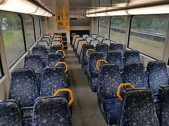In July 2013, Sydney Trains trialled rearranging the seating on the upper and lower decks of two carriages. There were 16 fewer seats per carriage; 3x2 seats were replaced by 2x2 seats in one carriage (N5134 on set T78) while in the other carriage (N5131 on set T77) there are double seats on one side and a bench style seating on the other. Both carriages were later returned to the normal 3x2 arrangement.[22]