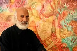 Syed Thajudeen Shaik Abu Talib (born 23 August 1943) is a Malaysian painter.[2] He is known for his large scale mural paintings of epic proportions set in period landscapes.[3][4] A distinctive stylisation, romantic treatment of subject matter and the rich colours as in the Ajanta cave paintings of Maharashtra and of the Mughal (enriched from the wealth of Indian mythology) are apparent in his works. This, together with the traditional visual arts' integral connection with literature, music, dance, sculpture and philosophy, helped shape Syed's early works. His works, as individualistic as they are, attempt to evoke a state of rasa, or heightened mood that belongs to a larger tapestry and sensibility of Asian artistic traditions. In many instances where his favourite subject matters deal with women and love, they share the same archetypal symbols and metaphors.