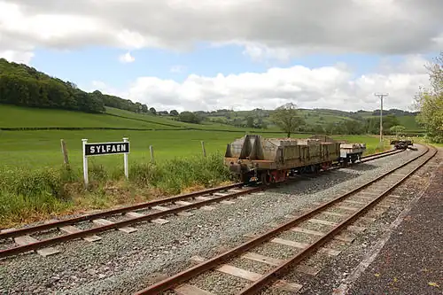 Sylfaen railway station, located in the tiny hamlet of Sylfaen on the A548, is an unstaffed request halt on the narrow gauge Welshpool and Llanfair Light Railway 2+3⁄4 miles (4.4 km) from the Welshpool Raven Square terminus. It has a short platform and waiting shelter.