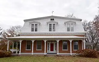 The Sylvanus Johnson House, also known as Pinehurst, is a historic building located in Iowa City, Iowa, United States. Johnson was a Connecticut native who worked in his father's brickyard before moving to Iowa in 1837. He opened the first brickyard in Iowa City and provided the bricks for many of its oldest buildings, including the Old Capitol.[2] He also provided the bricks for his own house, which is the first in the area to have a mansard roof.[2] Because the floor plan is very similar to the 18th century double-hipped roof houses in his native Connecticut it is very possible they were the inspiration for this house. The Second Empire style, which this house also resembles, would not become popular until after the American Civil War. The house was listed on the National Register of Historic Places in 1990.[1]