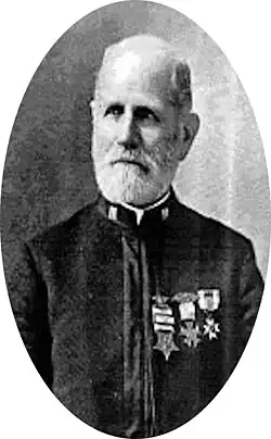 He was wounded at Antietam on September 17, 1862.[1] At Chancellorsville, on Sunday, May 3, he was recognized for leading a party of twenty picked men into no man's land to recover entrenching tools that had been abandoned there on Friday and Saturday.[2] At Gettysburg on July 1, 1863, he commanded Company K in the defense of Oak Hill where they inflicted severe casualties on Brig. Gen. Alfred Iverson's brigade.[3] He commanded Company K through the February 7, 1865 Battle of Hatcher's Run and was shot near his right shoulder.[4][1] He received the Medal of Honor for his actions at the Battle of Weldon Railroad, or Globe Tavern on August 19, 1864.[5] Due to the severity of his wounds received at Hatcher's Run, he never actually mustered as a captain before mustering out on June 7, 1865.[6][7]
