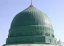 Hillenbrand writes that the understanding of color symbolism in Islam has suffered from a lack of literary evidence, but green floral patterns have been proposed as representing fertility and blue tilework proposed as representing good luck or heaven.[78] Anwaar Mohyuddin and Nasra Khan note that the color green, used on the dome of the Prophet's tomb, was associated with the Quraysh tribe of Muhammad, was purportedly his favorite color, and has become a symbol of Islam itself.[81]