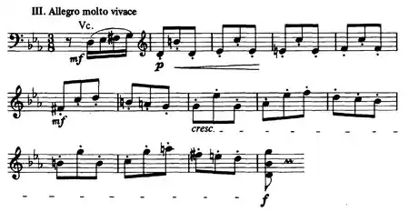 Tchaikovsky focused the majority of his revision on the first movement. The result was a completely new composition.[27] The only parts he did not change were the introduction, coda and 28 bars of the development section. His objective was to clarify structure and texture. He compressed the material, excising more than 100 bars of music in the process. He introduced more abrupt contrasts in the material, which heightened the musical drama, allowed him to more sharply define structural divisions within the movement, and allowed the movement to follow a more orthodox sonata form.[28]