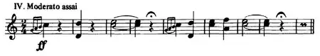 - A solo horn playing a Ukrainian variant of "Down by Mother Volga" sets the atmosphere for this movement. Tchaikovsky reintroduces this song in the development section, and the horn sings it once more at the movement's conclusion.