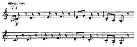 Kamarinskaya is based on two melodies. The first is a bridal song, "Izza gor" (From beyond the mountains). The second, the title song of the piece, is a naigrish, an instrumental dance to an ostinato melody repeated for as long as the dancers can keep up with it. Glinka uses the principle from folk song of allowing the musical structure to unfold around a thematic constant—or actually two constants, since he uses two folk songs.[10] He varies the background material surrounding these songs more than the songs themselves—orchestral color (timbre), harmonization, counterpoint. This way, Glinka preserves the original character of the dance, complementing it with creative variations in the orchestral treatment.[11]