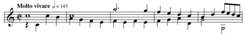 The last movement is a vigorous fugato, something else this work has in common with Mozart's Symphony No. 41 and Haydn's own Symphony No. 28 in C major which Mozart certainly studied. Unlike the "Jupiter" Symphony, in this symphony the fugal theme is at its first instance accompanied by its usual countersubject: