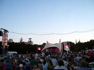 Symphony in The Domain (formerly known as Symphony Under the Stars) is the second of three open-air concerts that are held in The Domain, Sydney - Summer Sounds and Symphony, as part of Sydney Festival, and Mazda Opera in The Domain. Symphony in The Domain, performed by the Sydney Symphony, is traditionally held on the third Saturday evening of January. In 2014, the event was moved to the third Sunday, coinciding with Australia Day; in 2015, the event was also held on a Sunday. In 2007, the event celebrated its 25th anniversary, with a record crowd of 85,000 people.
