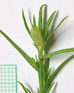 Symphyotrichum ciliatum is a species of flowering plant in the family Asteraceae native to North America and eastern Eurasia. Commonly known as rayless annual aster and rayless alkali aster, it is an annual, herbaceous plant that may reach over 70 centimeters (2 feet 4 inches) in height. Each flower head has many whitish then pink disk florets and no ray florets ("rayless").[3]