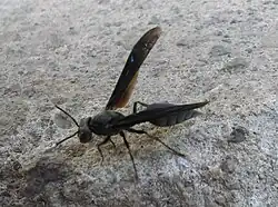 Synoeca septentrionalis is one of five species of wasps in the genus Synoeca.[1] It is a swarm-founding wasp that is also eusocial,[2] exhibiting complicated nest structure and defense mechanisms[3] and a colony cycle including a pre-emergence phase and a post-emergence phase.[4] It is typically found in areas from Central to South America.[3] This wasp is one of the larger species of paper wasps and exhibits multiple morphological adaptations as a result of this.[5] Synoeca septentrionalis is known for possessing a very painful sting.[6]