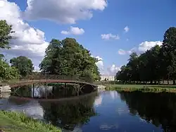 Syon was the site of Sion Abbey, which was founded in 1415 and named after Mount Zion in Jerusalem. It was dissolved in 1539. Foundations of the abbey were discovered in 2003. Landscaping of the gardens in the middle of the eighteenth century have left them with a collection of rare trees and plants and a lake which has a population of terrapins. The Great Conservatory, built in 1826 to a design by Charles Fowler, was the first to be built out of cast iron.[3]