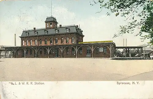 Syracuse station was the Delaware, Lackawanna and Western's railroad station in Syracuse, New York. It was housed in different buildings in succession. It hosted trains going north to Oswego, New York on the Lake Ontario coast by way of the DLW's acquisition, the former Oswego and Syracuse Railroad; and it also hosted trains going south to Binghamton on the route of the former Syracuse and Binghamton Railroad, and further (via connection) to Hoboken, New Jersey.