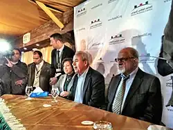 The SNC was soon plagued with internal conflict. One secular member of the SNC claimed that more than half of the council are Islamists.[38] On 13 March 2012, shortly before the second meeting of the Friends of Syria Group, three prominent members of the SNC resigned, giving as their reason that the SNC "had not gotten very far in working to arm the rebels". and demanding more support for the Free Syrian Army. The three were Haitham al-Maleh, a former judge and long-standing dissident, Islamist-leaning liberal and opposition leader Kamal al-Labwani and human rights lawyer Catherine al-Talli.[39][40][41] They also protested Ghalioun's leadership and accused the SNC of being corrupt and a liberal front for the Muslim Brotherhood.[40][42] They founded another opposition group called the Patriotic Action Front[39] (also translated as "Syrian Patriotic Group") and announced that they would speed up "backing the national effort to bring down the regime with all available resistance means including supporting the Free Syrian Army".[43] Even though the Patriotic Action Front soon disintegrated due to internal strife,[39] the split caused the SNC to lose about one third of its members.[17]