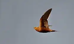 The chestnut-bellied sandgrouse or common sandgrouse (Pterocles exustus) is a species of sandgrouse. It is a sedentary and nomadic species that ranges from northern and central Africa and further east towards western and southern Asia. There are six recognised subspecies.[2]