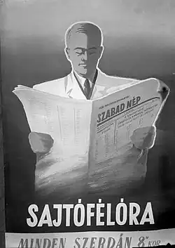 ![]() Poster from the press hour of the Szabad Nép daily, January 1, 1950 | |