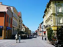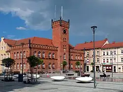 Panorama of Szczecinek Town Hall and Market Square Bohaterów Warszawy - promenade dedicated to the war heroes of Warsaw | |