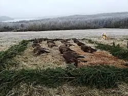In January and February they hunt for boars, foxes, deer, etc. (Boars can be hunted throughout the whole year.) In March, hunters mostly go for roes.