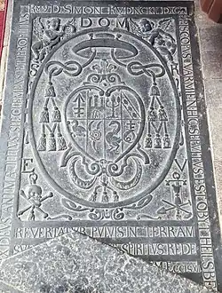 Szymon Rudnicki of the Lis coat of arms (born 20 October 1552, died 4 July 1621) – Bishop of Warmia from 1604 to 1621, Apostolic Administrator of the Sambia Diocese, Great Secretary of the Crown from 1601,[1] provost of the Poznań Cathedral Chapter from 1600 to 1605,[2] scholastic of the Łęczyca collegiate chapter, canon of Kraków, Warmia, and Poznań, and Royal Secretary at the courts of Stephen Báthory and Sigismund III Vasa.[3]