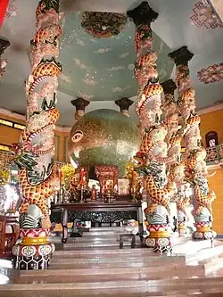 The Great Divine Temple, also known as the Cao Dai Cathedral (/ˌkaʊ ˈdaɪ/) or the Tay Ninh Holy See (Vietnamese: Tòa Thánh Tây Ninh Vietnamese pronunciation: [twaː˨˩ tʰan˦˥ təj˧˧ nɨn˧˧]), is a religious building in the Cao Dai Holy See complex in Tây Ninh province, Southeast Vietnam.[1][2] It is the first and most important temple of Caodaism in Vietnam.[3][4]