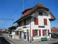 Gerolfingen village had a harbor on the lake and was a local trading and fishing center. The residents of Täuffelen grew crops, cared for vineyards on the hill below the church and fished in the lake. The first industrial factory opened in Täuffelen in 1846 and began to change the character of the village. This first factory, which manufactured watch and clock parts, was followed by several other factories. The Jura water correction projects and the construction of the Aarberg-Hagneck Canal between 1868 and 1880 opened up new land around the villages and removed the threat of flooding.[4] In 1916 the growing village was connected to the Biel-Täuffelen-Ins (BTI) railroad. In 1944 the BTI established their headquarters in Täuffelen. While industry grew in the village, cherry orchards flourished in the farm land around it. In 1950 a secondary school opened in the municipality, which brought in students from surrounding communities.[3]