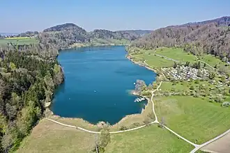 Türlersee is a lake in the district of Affoltern, Canton of Zurich, Switzerland. It lies on the border of the municipalities of Aeugst and Hausen am Albis at an elevation of 643 m. The lake has an area of 0.49 km² (maximum length 1.4 km, width 500 m).