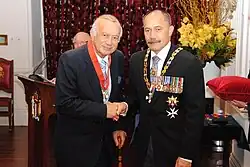 ![]() Tūroa Royal (left) Governor General Sir Jerry Matepārae (right), 2013. | |