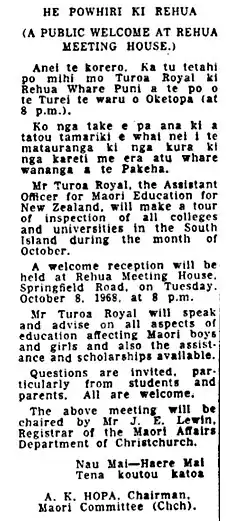 - ^ "Turoa Kiniwe Royal". Tu Tangata (6): 13. 1 June 1982.
