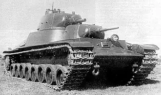 The T-100 was a Soviet twin-turreted heavy tank prototype, designed in 1938–39 as a possible replacement for the T-35 heavy tank. The T-100 was designed by N. Barykov's OKMO design team at S.M. Kirov Factory No. 185 in Leningrad. The T-100 was originally conceived with three turrets and was eventually built with two. It was in competition with a similar design, the SMK, but neither was adopted and instead a single turret version of the SMK was ordered as the KV-1. All three prototypes were tested at the same time in the Battle of Summa during the Winter War with Finland.