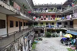 Marble Jade Mansion is an apartment block built in February 1963 in Jalan Berhala Brickfield, Kuala Lumpur. Developed by Siew Gaik Realty Co, and built by the chartered architects T.Y.Lee & Sons.[6] It was a low cost condominium at RM15000 for each unit. The building consists of 60 units in four storey flat houses with 2 or 3 bedrooms with a square overlooking and open courtyard.[7] It has 4 narrow staircases and limited size of walkway for drying clothes or a small shrine.