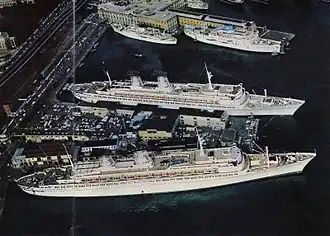 Italy's flagship SS Michelangelo made her last Atlantic crossing in July 1975, under command of Senior Captain Claudio Cosulich. Afterwards, she was laid up at La Spezia alongside her sister.